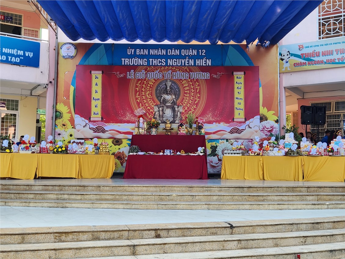 Ngày 15 tháng 04 năm 2024, hòa cùng không khí thiêng liêng của ngày hội dân tộc, thầy và trò Trường THCS Nguyễn Hiền đã long trọng tổ chức Lễ Giỗ Quốc Tổ Hùng Vương. Tham dự buổi lễ có đồng chí Huỳnh Tấn Việt thường vụ Ban Thường vụ Quận Ủy Quận 12, Trưởng Ban tuyên giáo Quận Ủy, Đại diện lãnh đạo Phòng GD&ĐT Quận 12, Đại diện Đảng ủy Ủy ban nhân dân Phường Tân Thới Hiệp, Ban Đại diện CMHS của nhà trường, Ban Giám Hiệu và toàn thể cán bộ giáo viên, công nhân viên cùng các em học sinh thuộc khối lớp 6, 8 của trường đã về dự.